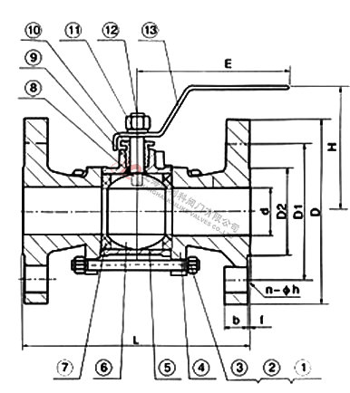 Q41F三片式法蘭球閥結構圖