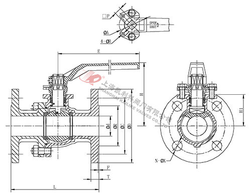 Size PN d L R C D H H1 E F T □P ø A ØB N ØX ISO 5211