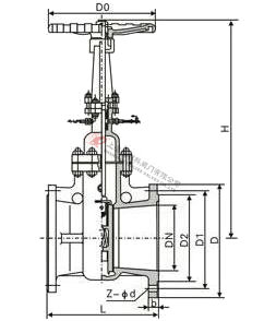 Z64H焊接式不銹鋼水封閘閥外形結構圖