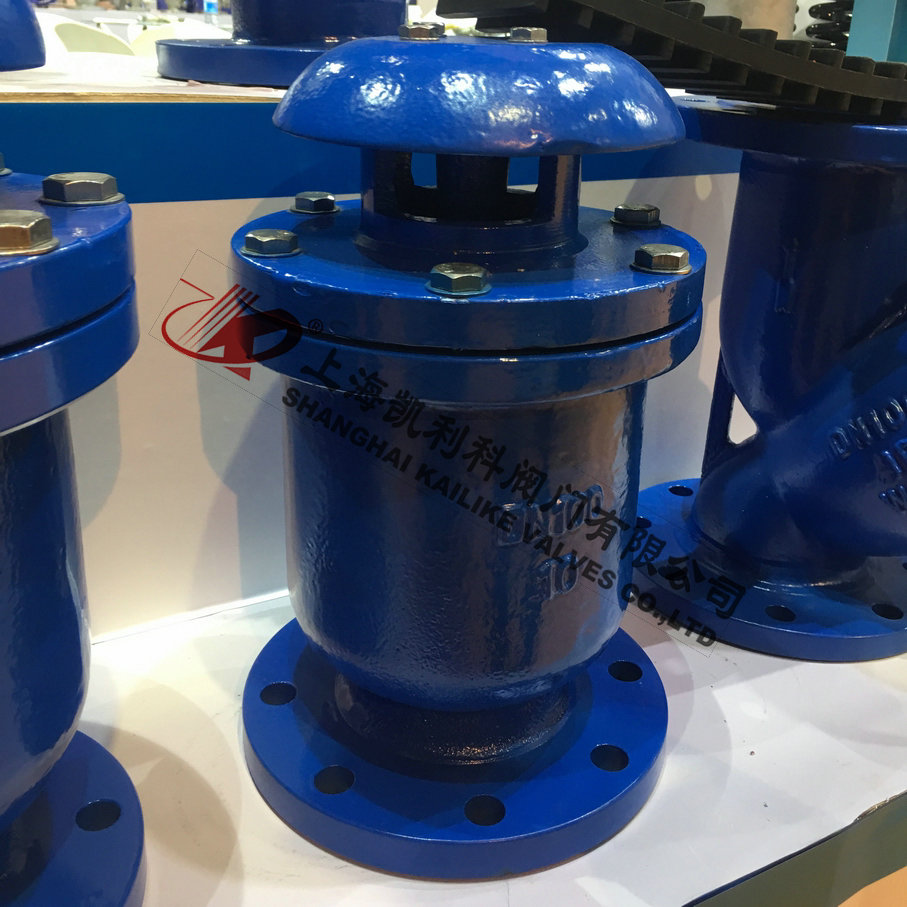 當管內開始注水時,塞頭停留在開啟位置,進行大量排氣,當空氣排完時,閥內積水浮球被浮起,傳動塞頭至關閉位置,停止大量排氣;當管內水正常輸送時,如有少量空氣聚集在閥內到相當程度,閥內水位下降,浮球隨之下降,此時空氣則由小孔排出。當抽水機停止,管內水流空時,或遇管內產生負壓時,此時塞頭開啟,吸入空氣確保管線安全。