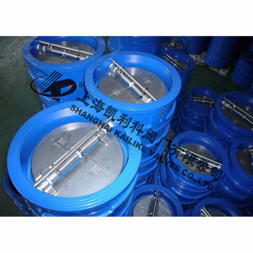 H76H、H76W、H76X對(duì)夾雙瓣式止回閥由閥體、閥瓣、閥桿及彈簧等零件組成,采用對(duì)夾連接。由于閥瓣的關(guān)閉行程短,并且有彈簧加載,可顯著減少水錘現(xiàn)象。該閥主要適用于城市、工業(yè)及高層建筑給水、排水管網(wǎng)上。由于其結(jié)構(gòu)長度比一般止回閥短,對(duì)有安裝空間限制的場所最為適用。