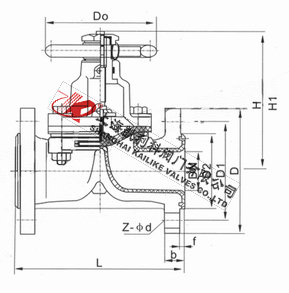4、閥體與蓋被中間隔膜隔開,使得隔膜上方的閥蓋,閥桿零件不受介質侵蝕;